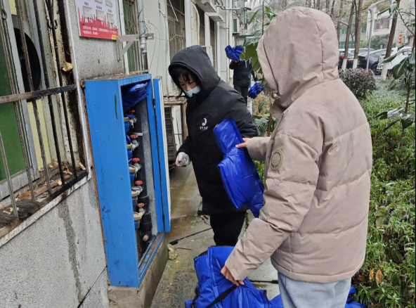 2023年10月以來,公司就著手對(duì)城區(qū)需要保溫的水表、露天供水管道及供水設(shè)施進(jìn)行摸底,制定了全面的防凍保溫方案。近日,孝感迎來多場凍雨天氣,為了確保供水設(shè)施的安全使用,公司共抽調(diào)相關(guān)部室共50余名工作人員協(xié)助開展防凍保供工作,相關(guān)人員在客服部的統(tǒng)一調(diào)度下分城南城北兩個(gè)片區(qū)再次深入各小區(qū),對(duì)重點(diǎn)區(qū)域立式水表箱、平臺(tái)水表箱、高層小區(qū)水表、地下水表箱、消防栓等供水設(shè)備通過保溫海綿包扎、打泡沫膠和膠帶封箱門等方式做好防凍保溫工作,爭取不漏一處,不落一戶,全力以赴打贏這場供水防寒防凍保衛(wèi)戰(zhàn)。