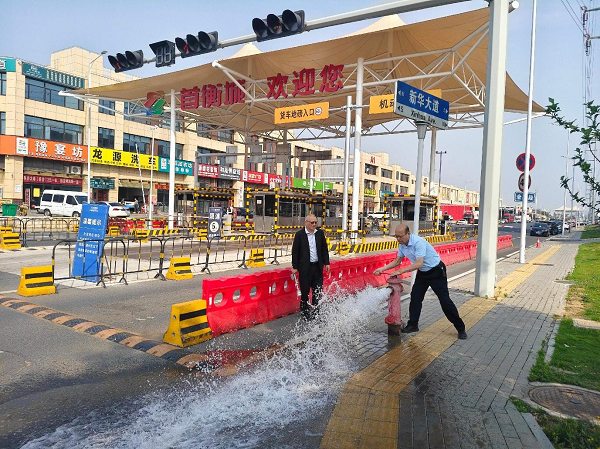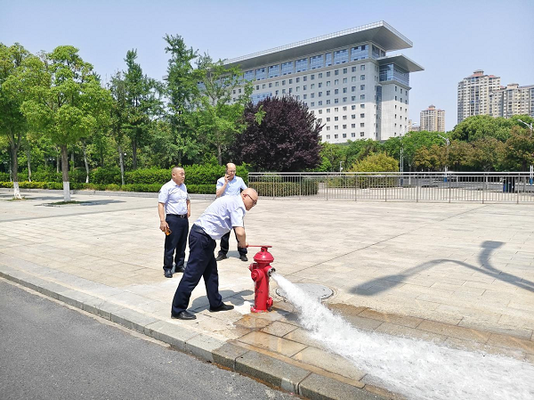 在首衡城農產品交易中心,工作人員對市場入口和市場內各貿易場所的消防設施進行了檢查,逐一開閘試水,確保水源通暢,檢查栓體各配件是否完好,有無松脫,閘閥能否正常啟閉等。